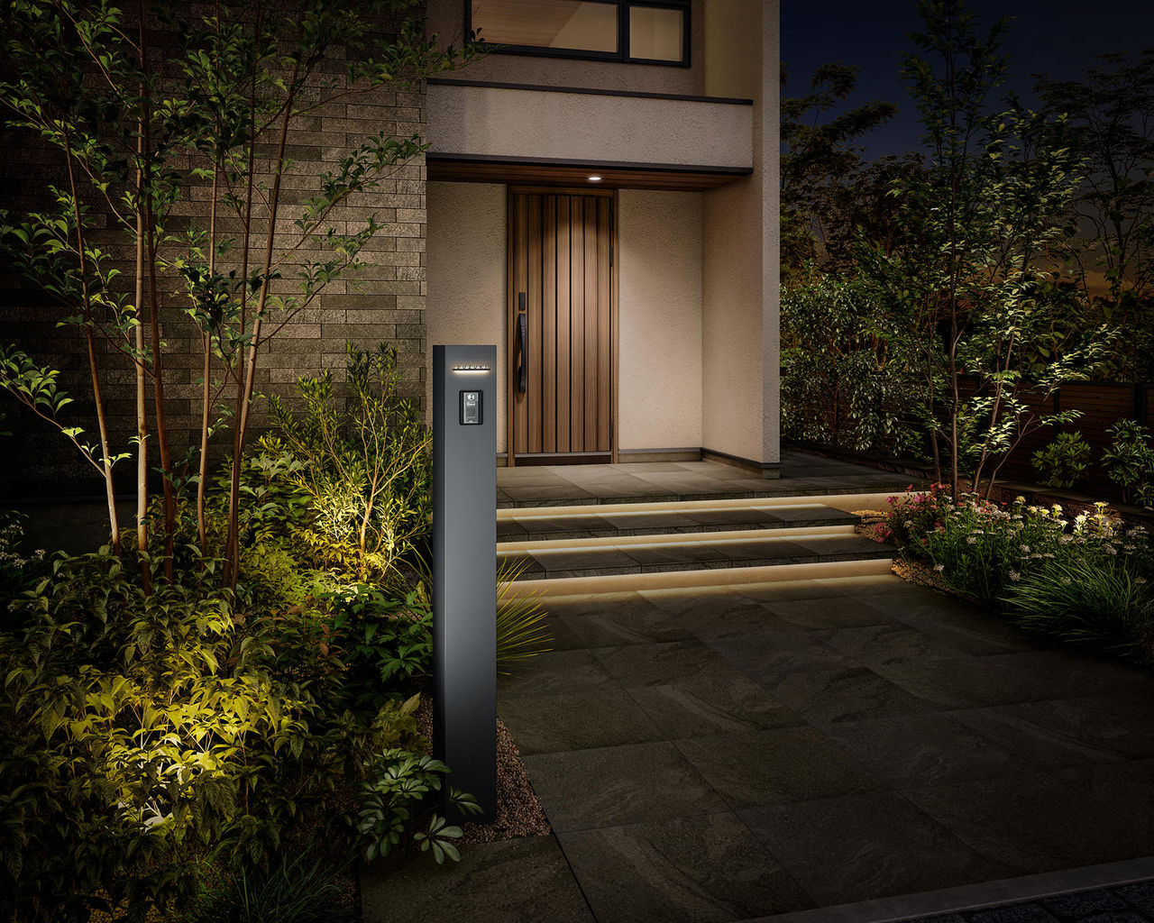 ミニマルデザインを追求した門柱にも新要素が加わりました。