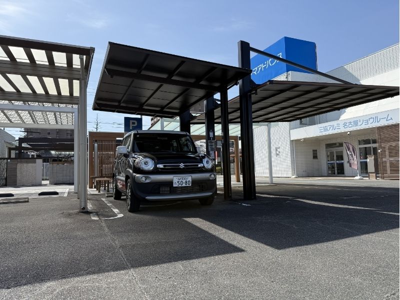 先日、三協アルミの東海エクステリア建材支店の展示場にて、実際に施工されたシルバーポリカを確認してきました。現場で感じたリアルな感想をお伝えします。